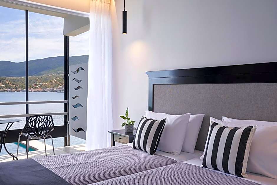 Overlooking the Saronic Gulf and Poros Town, this spacious, master suite is classically decorated and offers: -flat screen TV -seating area with sofa -air conditioning -writing desk -marble bathroom with toiletries.